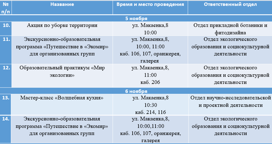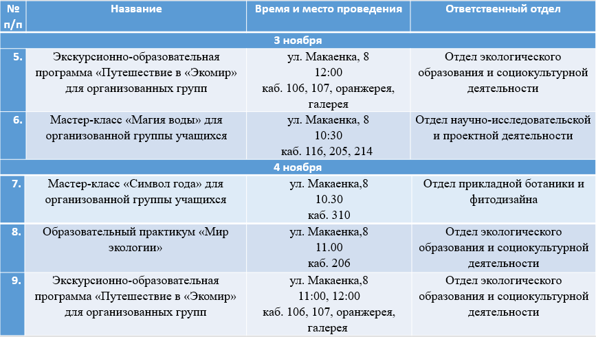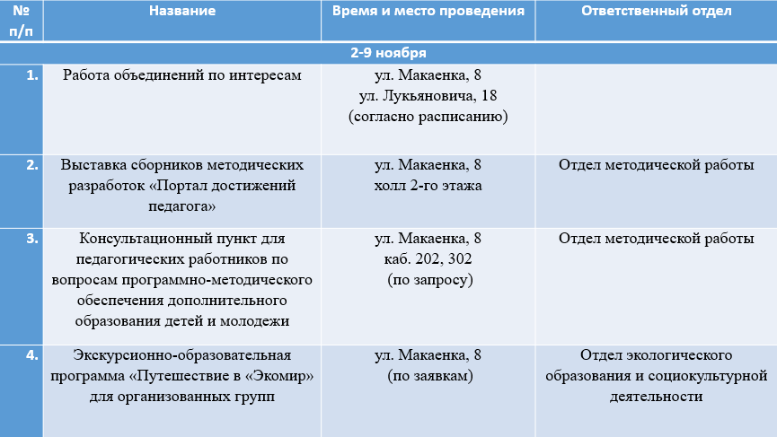 План мероприятий учреждения образования «Республиканский центр экологии и краеведения» в рамках осенних каникул с 02 по 09 ноября 2025/2026 учебного года
