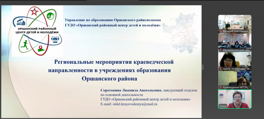 Пасяджэнне методаб’яднання прайшло ў анлайн рэжыме ў форме прэзентацыйнай пляцоўкі па тэме ««Папулярызацыйная краязнаўчая дзейнасць. Інфарматыўна-камунікатыўныя тэхналогіі».