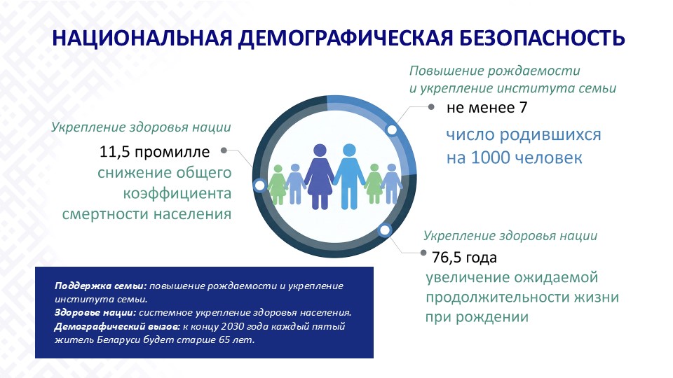 Сегодня все развитые страны столкнулись с беспрецедентным снижением рождаемости и старением населения. К сожалению, Беларусь не исключение. «Чтобы только сохранять численность населения, в белорусских семьях должны рождаться по три малыша», – подчеркнул Александр Лукашенко.